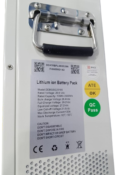 Capacity: 25.6V / 100Ah (2.56 kWh)