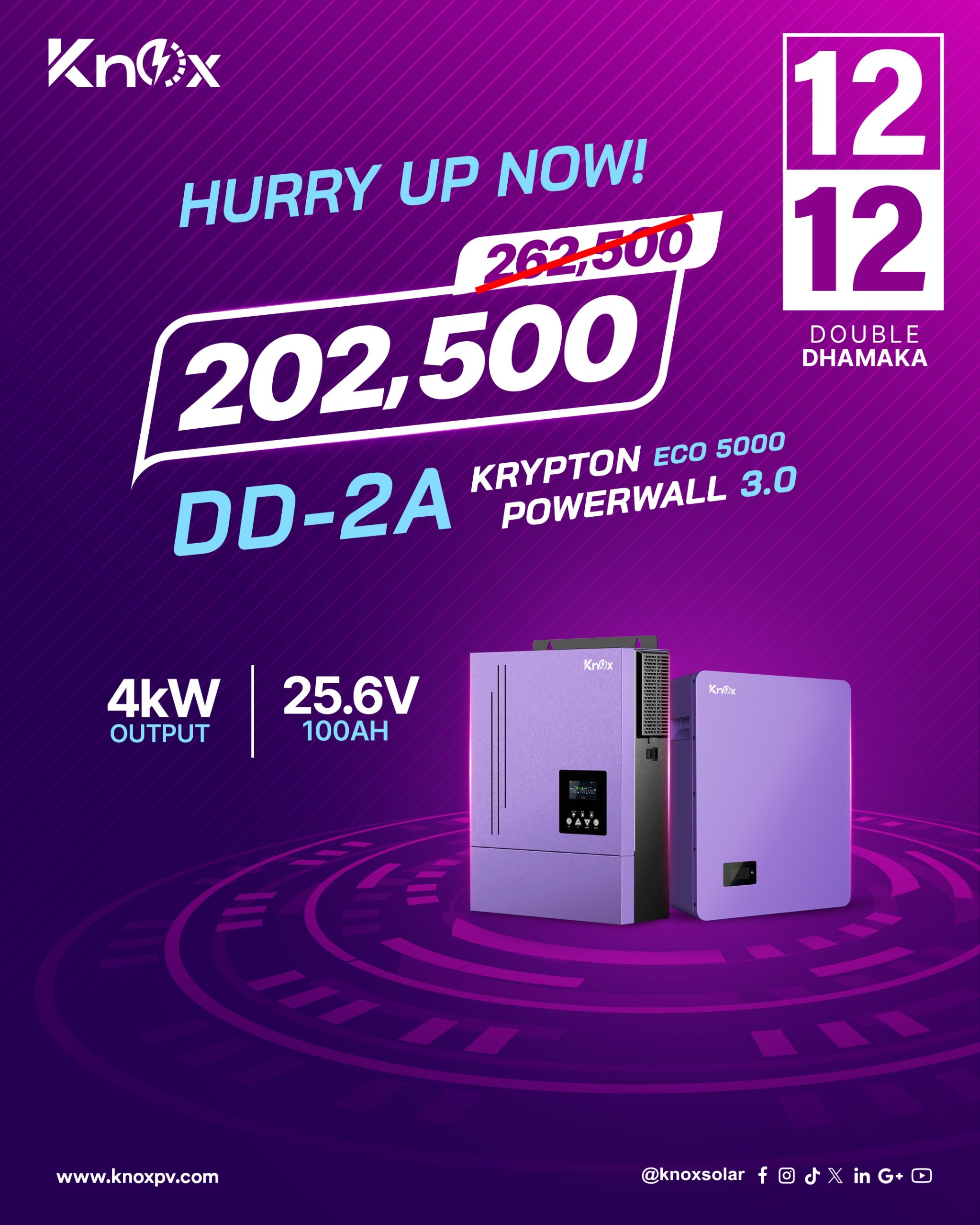 The Knox Combo Deal 2A offers a powerful and efficient renewable energy solution, featuring the Krypton ECO 5000 4kW Hybrid Solar Inverter paired with the Powerwall 3.0 25.6V 100Ah Lithium Battery. This all-in-one system delivers reliable power backup, energy savings, and long-term performance for homes and businesses.