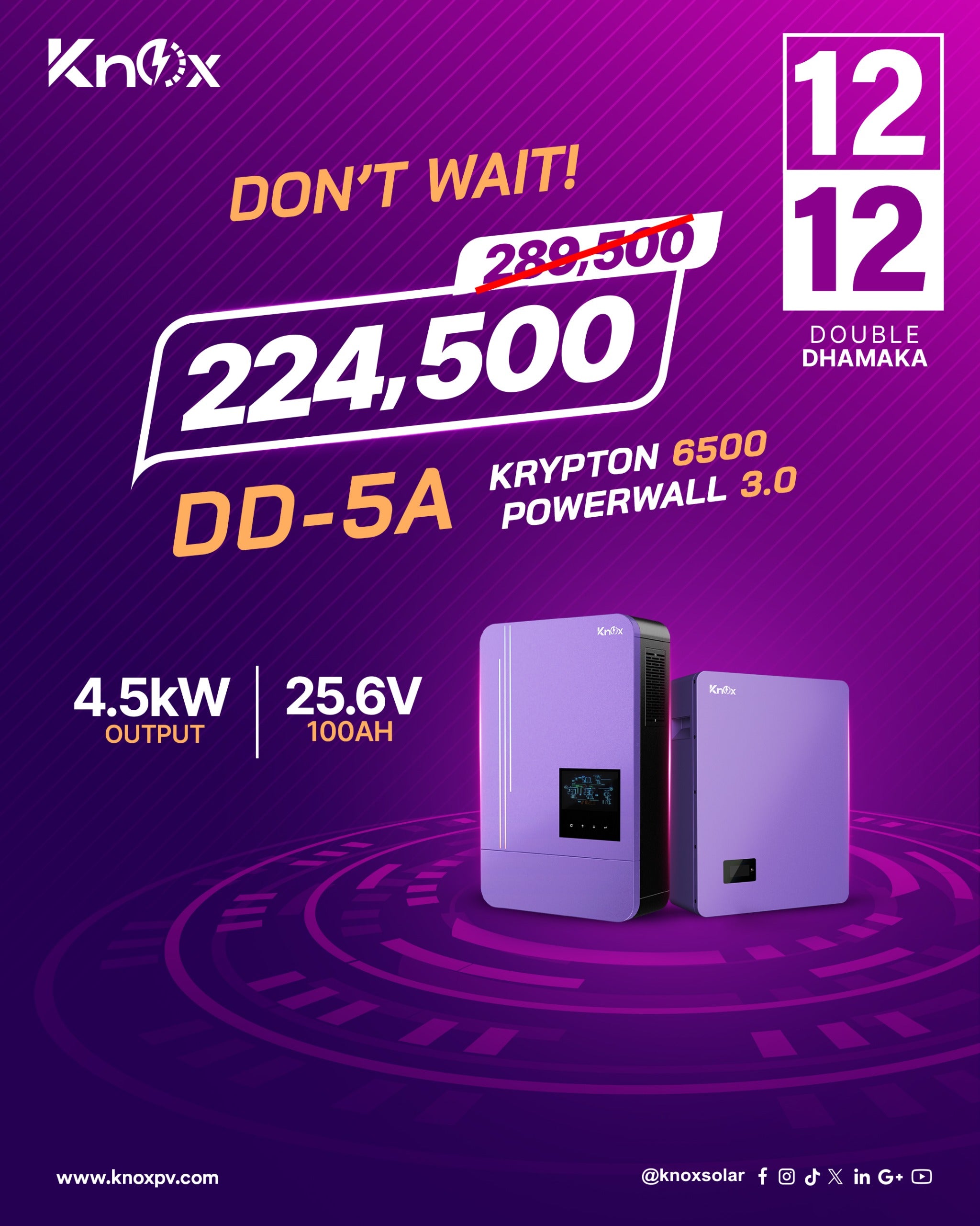 The Knox Combo Deal 5A is a high-performance solar power package featuring the Krypton 6500 4.5kW Hybrid Solar Inverter and the Powerwall 3.0 25.6V 100Ah Lithium Battery. Designed for efficiency, reliability, and long-term performance, this system delivers a stable power supply, reduced electricity costs, and reliable energy backup for homes and small businesses.